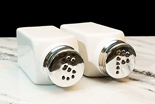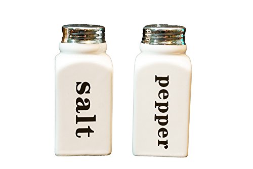 Accent your vintage kitchen or tabletop in white classic elegance with these high quality ceramic salt and pepper shakers. Each shaker measures 3 3/4 inches tall by 1 3/4 inches square, and weighs just 3.6 ounces.