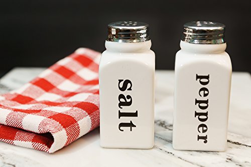 Ceramic Salt & Pepper Shaker Set Classic Black and White Vintage Style, White