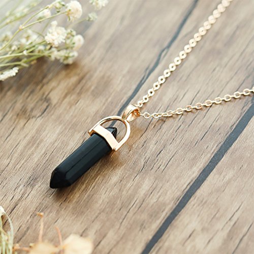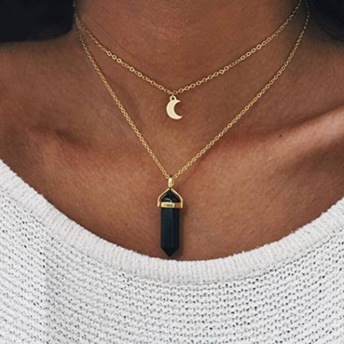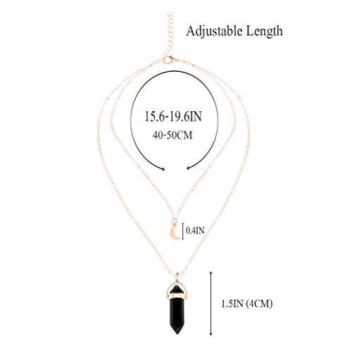 Simsly Choker Necklace with Moon Stone Pendant Layered Chain for Women and Girls XL-113 (Black)