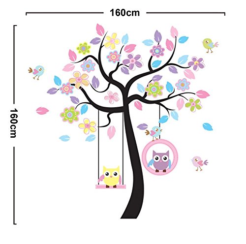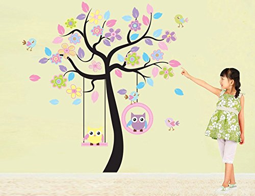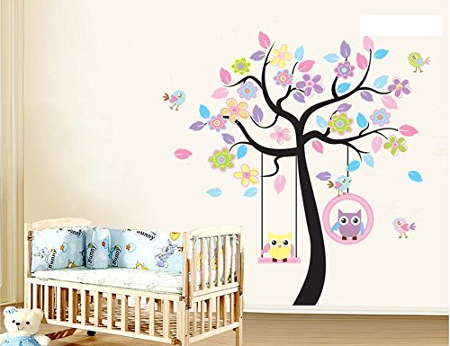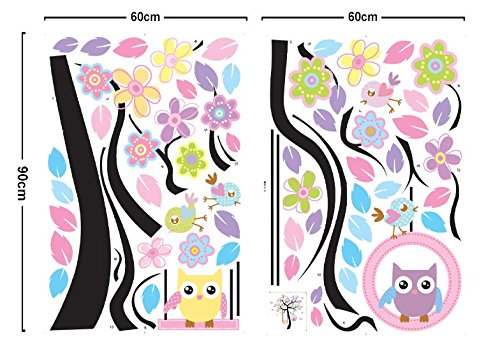 ufengke® Colorful Flower Tree Cartoon Owls Birds Wall Decals, Children's Room Nursery Removable Wall Stickers Murals