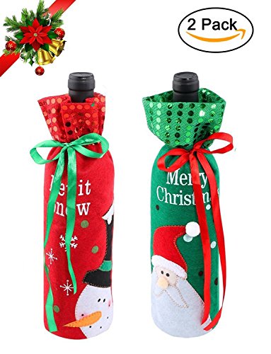 Youniker 2 Pack Christmas Wine Cover Snowman(Green and Red)
