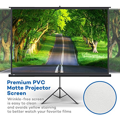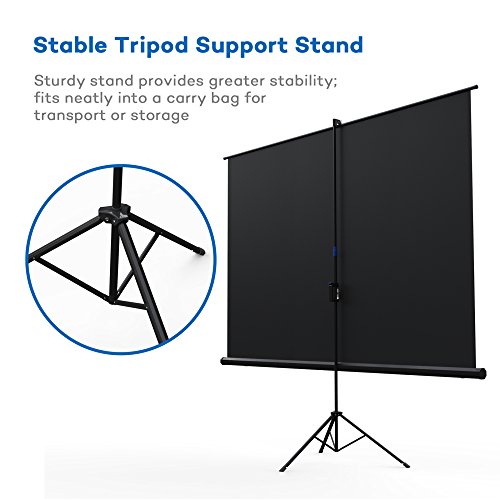 Stable Tripod Support Stand Projector screens have a tenuous relationship with gravity, which can cause them to fall down if not properly supported. Constructed with stability in mind so you can watch movies without disturbance, the projector screen includes a secure tripod support stand that keeps the screen upright and balanced.