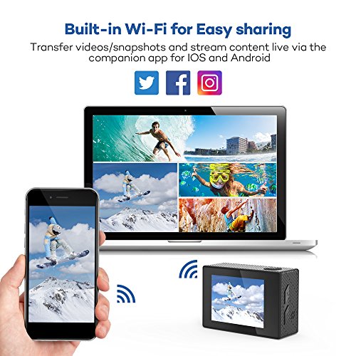 Built-In Wi-Fi for Easy Sharing: Action camera transfers videos / snapshots and streams content live without manually taking the SD card in and out thanks to the app for iOS and Android