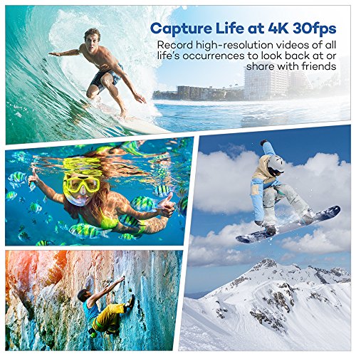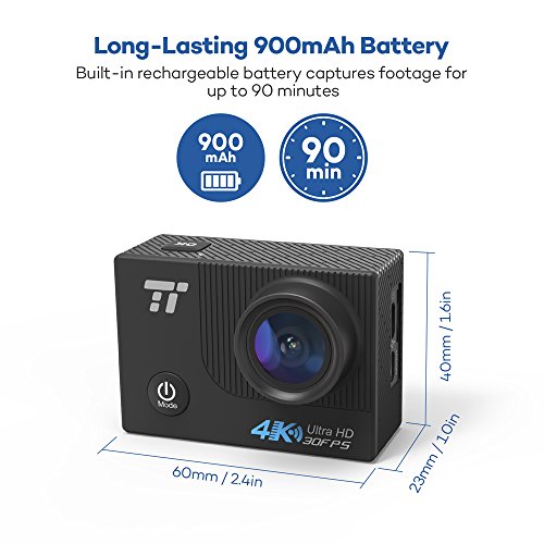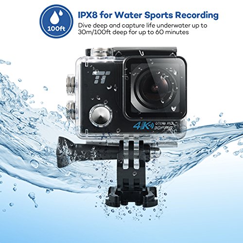 TaoTronics Action Cam 4K, Waterproof Sports Camera with Built-In Wi-Fi, 900mAh Battery, Up to 90 Minutes Videos, IPX8 up to 30m (100 ft)