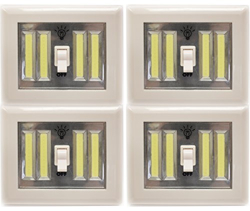 Dual Cob LED Night Light With Switch - ULTRA BRIGHT - New LED Technology - Super Bright LED Lights - Project Light - Night Light - 400 Lumens (White 4 Pack)