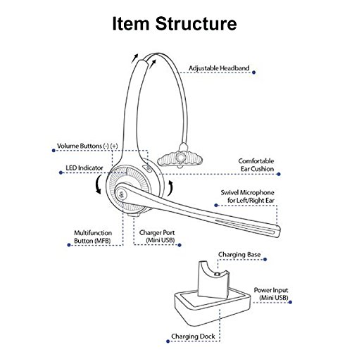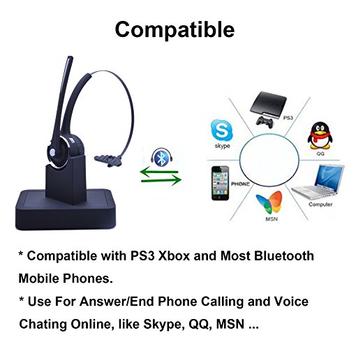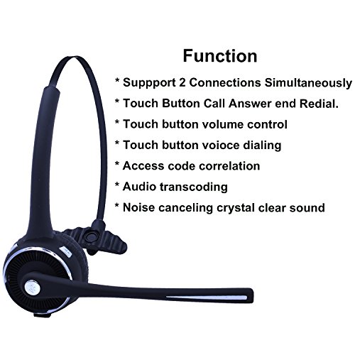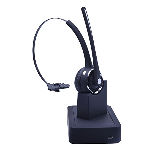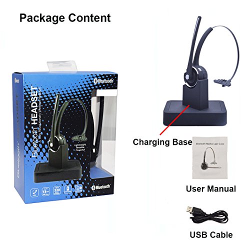 Bluetooth Headset with Charging Dock, YAMAY® Wireless Headphones with Microphone Noise Cancellation Hands Free Calls Connect Two Devices Mute for iPhone Android Phone Computer PS3 PS4 Driver Driving
