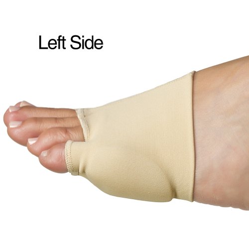 Soft-stretch fabric sleeve comfortably positions gel pad over bunions and forefoot to redistribute and ease impact pressure from walking. Use on either foot; simply flip "inside-out" to reverse orientation. Washable.
