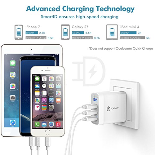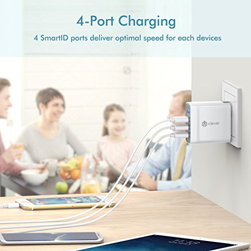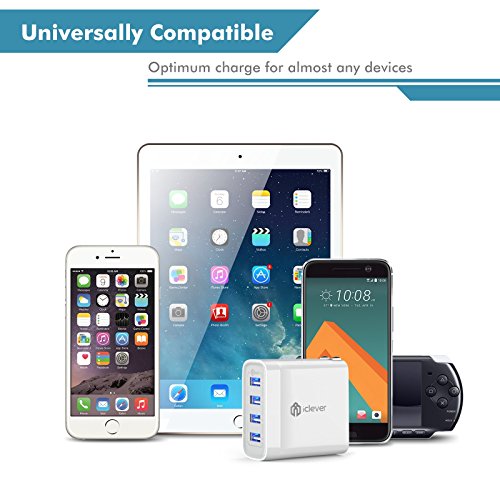 -. Binding : Wireless Phone Accessory -. Brand : iClever -. Feature : Simple, compact, and tailored to travel. With 4 USB ports, folding prongs, and tapered waistline that makes it an easy pull out and plug in -. Label : iClever -. Manufacturer : iClever -. PackageQuantity : 1 -. ProductGroup : Wireless -. ProductTypeName : WIRELESS_ACCESSORY -. Publisher : iClever -. Studio : iClever -. Title : iClever Boostcube 40w 4 Port USB Wall Charger