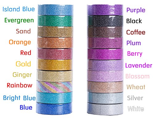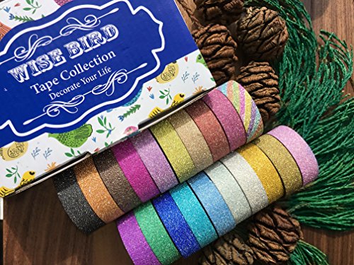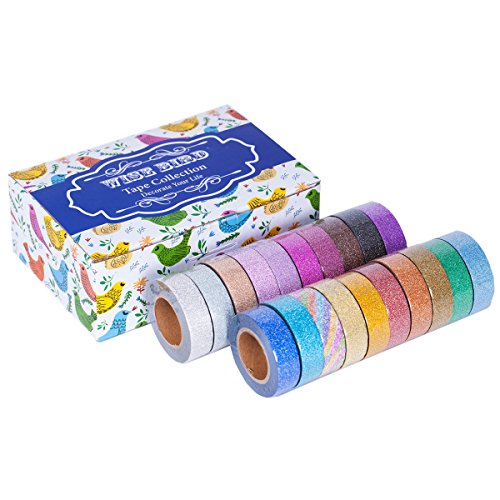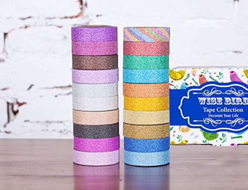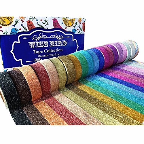 Wise Bird Glitter Tape Sparkle Tape Shiny Rainbow Assorted Color Masking Tape Sticky Adhesive DIY Tape, Crafts Gift Tape for School Office Home Decoration and Kid projects 32ft/roll, Set of 20-G40