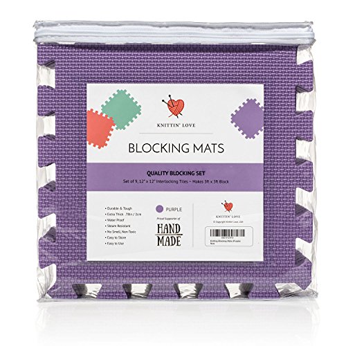 Knitting Blocking Mat Set - Extra Thick .78inch, Steam and Wet Block, Durable, Storage Bag Included, Easy to Use, Easy to Store (Purple)