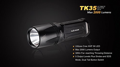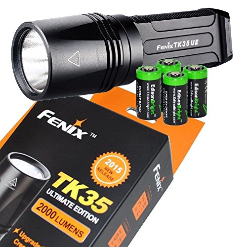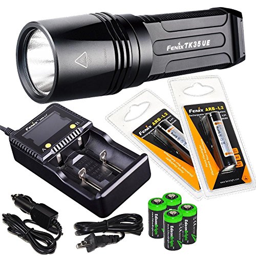 FENIX TK35 Ultimate Edition 2015 (TK35UE) 2000 Lumen LED Tactical LED Flashlight with 2 x Fenix ARB-L2 2600mAh 18650 Li-ion rechargeable batteries, 4 X EdisonBright CR123A Lithium batteries, battery charger, in-car Charger, Holster & Lanyard bundle