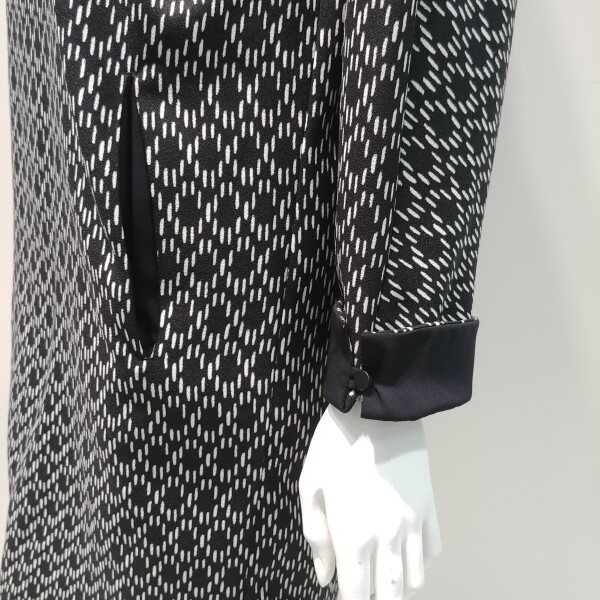 심플한 H라인 원피스에 솔리드와 프린트 원단 2가지 스타일의 원피스 입니다네크라인 부분에 테이프를 뒤쪽으로 묶을수 있도록 디자인한 스타일 입니다양쪽에 포켓이 포켓이 있어 편안하게 입기좋고 루즈한 원피스 입니다기장은37 1/2 인치 입니다.