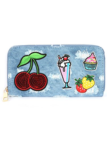 (Variety Gift Shop Fashion Jewelry)/Accessories/Wallets, Money Key Organizers/DIRECT FROM USA/Cherry, Milkshake, Cupcake Distress Patch Denim Fabric Clutch Wallet Bag (Style A)