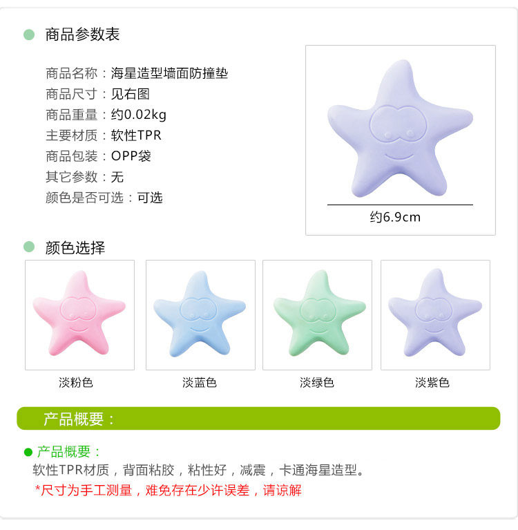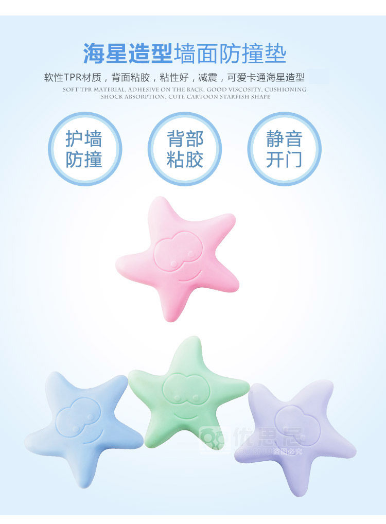 海星造型加厚墙面防撞垫门后静音防碰垫门把手锁防护垫橡胶防震垫