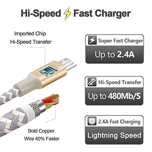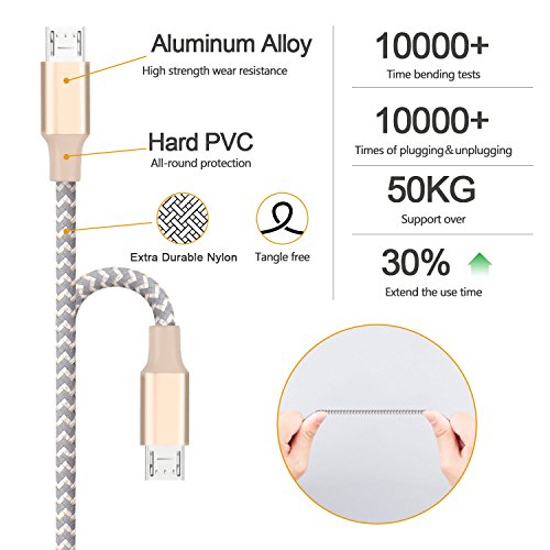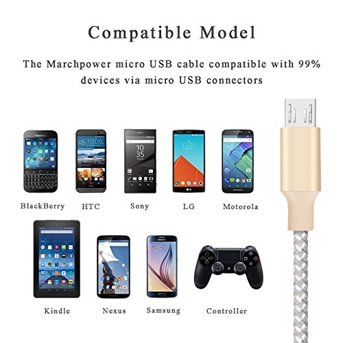 【Superb Durability】 With its nylon-braided insulation and aluminum, heat-resistant connector, Marchpower charging cables are super durable and flexible for 5000+ heavy pulling and dragging. ( 3 times than other likewise cables) and it won't get loose or fall out easily from your devices as other normal micro cables.
