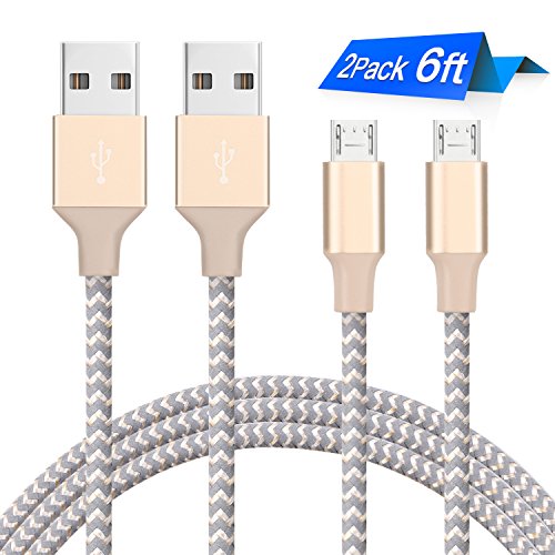 Marchpower, Micro USB Cable Nylon Braided 2 Pacs 6FT Charging Cable Android 2.0 Sync and Charge Cable for Samsung Motorola Galaxy Nexus LG HTC Huawei and More (Champagne Gold )
