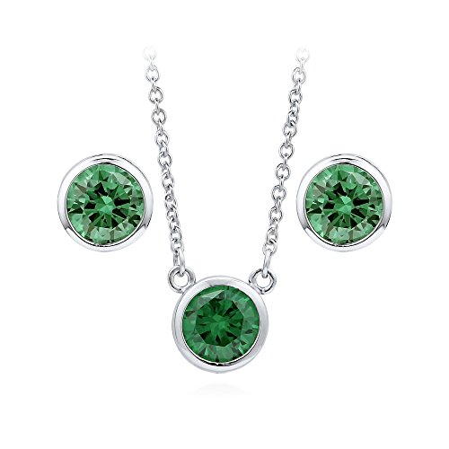 -. Title : BERRICLE Sterling Silver Simulated Emerald Cubic Zirconia CZ Solitaire Necklace and Earrings Set