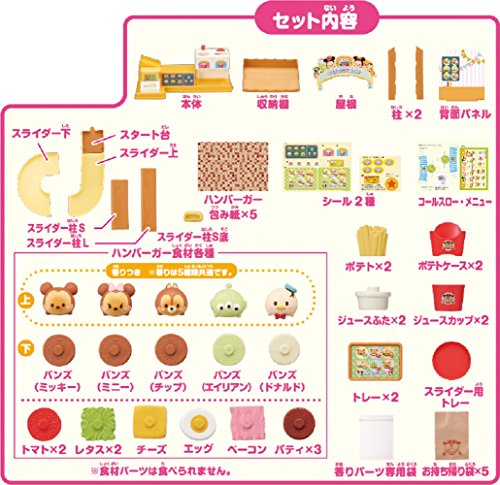 【セット内容】本体 収納箱 ハンバーガーパーツ×10 ハンバーガー具材パーツ×10 トレー×2 ポテト×2 ジュース×2 バーガー用袋×5 包み紙×5 包み紙用ラベル コールスロー×2 メニューカード スライダー用トレー