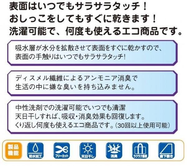 表面はいつでもサラサラタッチ!おしっこをしてもすぐに乾きます。洗濯可能なので、何度でも使えるエコ商品です。