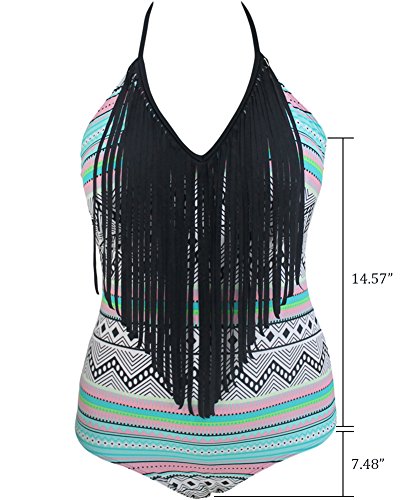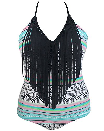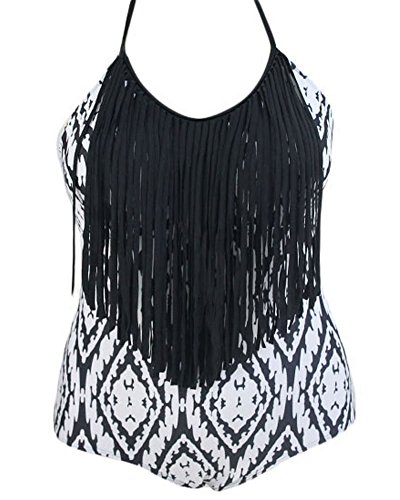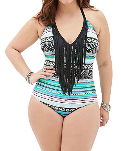 Lalagen Hot Women's Halter Tassel Diamond Plus Size Swimsuit Monokini