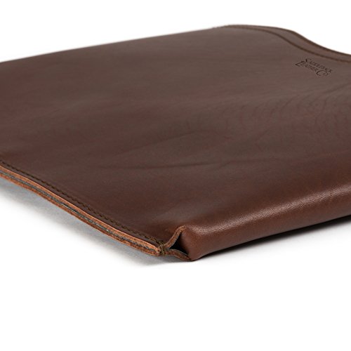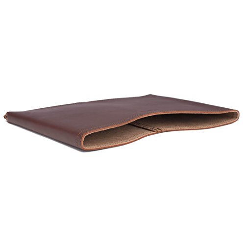 Full grain Saddleback Leather sleeve for Macbook Pro laptops. Sewn with thick leather edges that help absorb impacts. This case is perfectly snug: not too loose, not too tight, with a contoured top and bottom that allow easy removal of your laptop. Best of all, it's surprisingly lightweight. Built to last with no breakable parts and backed by Saddleback Leather's 100 year warranty. Because of natural oils shade may vary. Small: Exterior: 13.25" W x 9.75" H x 0.75" D; Interior: 12.75" W x 9.25" H. Medium: Exterior: 14.5" W x 10.75" H x 0.75" D; Interior: 14" W x 10.5" H.Feature