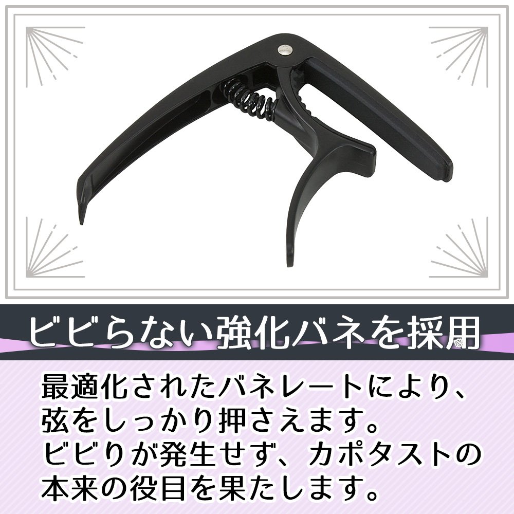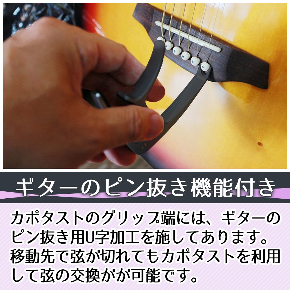 At the grip end of the capo taste, U-shaped processing for pin removal of the guitar has been applied.