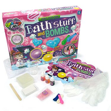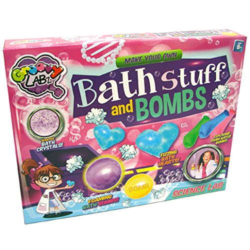 Studio : Groovy Labz Publisher : Groovy Labz Binding : Misc. Product Description Five groovy science experiments designed to make bath time fun for kids!;Make exploding bath bombs! Prepare sweet-scented soap hearts! Make beautifully fragrant bath crystals! Produce sensationally scented water balloons!;Plus create your own bath crayons to draw in the bath;Includes clear soap, white soap, 1 beaker, 1 mould, a pair of gloves, a stirring stick, coloured dye, bath crystals, 2 water balloons and instructions;Recommended for ages 8 years 0