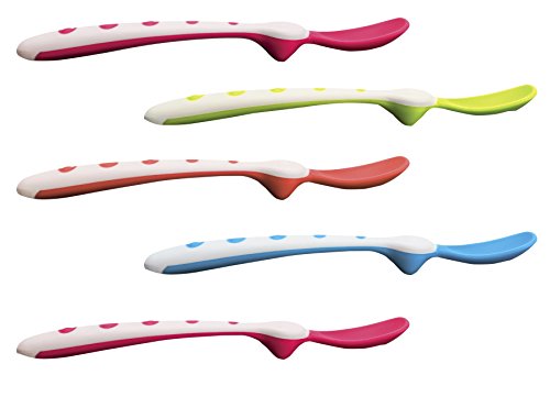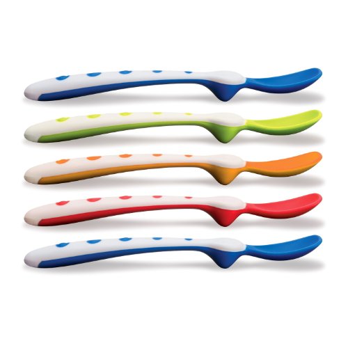 -. Feature : Thermoplastic Elastomers, Polypropylene / Soft tip; Built-in support keeps spoon off table / Spatula bowl helps wipe food from baby's mouth / Long handle reaches bottom of tall jars / Dishwasher-safe