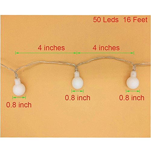 - You will get 2 pack 16 feet/5M globe string lights: The globe light is consist of 50 translucent globes, the diameter of each globe is 0.8 inch and globes are spaced 4 inches apart.