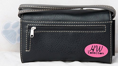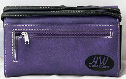 -. Feature : Made from high quality premium faux/imitation leather with cut out colored scrolls, blue beads, silvertone studs, large rhinestone silvertone cross, and detachable HW Collection key ring/purse charm on the front / Single, removable strap to convert the wallet into a wristlet; a single, long removable shoulder/crossbody strap / Snap closure; 9 slots on the inside for credit cards, ID, or business cards and 3 clear ID windows / Zippered and slide pocket on the back / 7.5 inches long X 1.5 inches wide X 4.5 inches tall