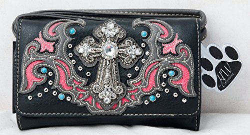 -. Title : HW Collection Western Rhinestone Cross Crossbody Wristlet Clutch Wallet