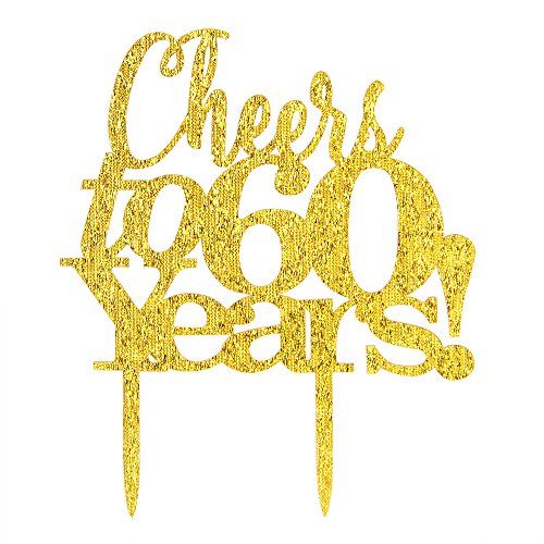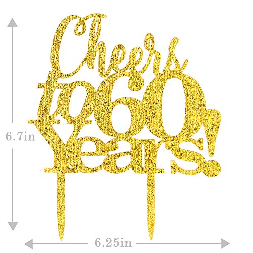 Cheers to 60 Years Cake Topper - 60th Birthday, Wedding Anniversary, Retirement Party Bunting Sign Decorations Photo Props - Gold