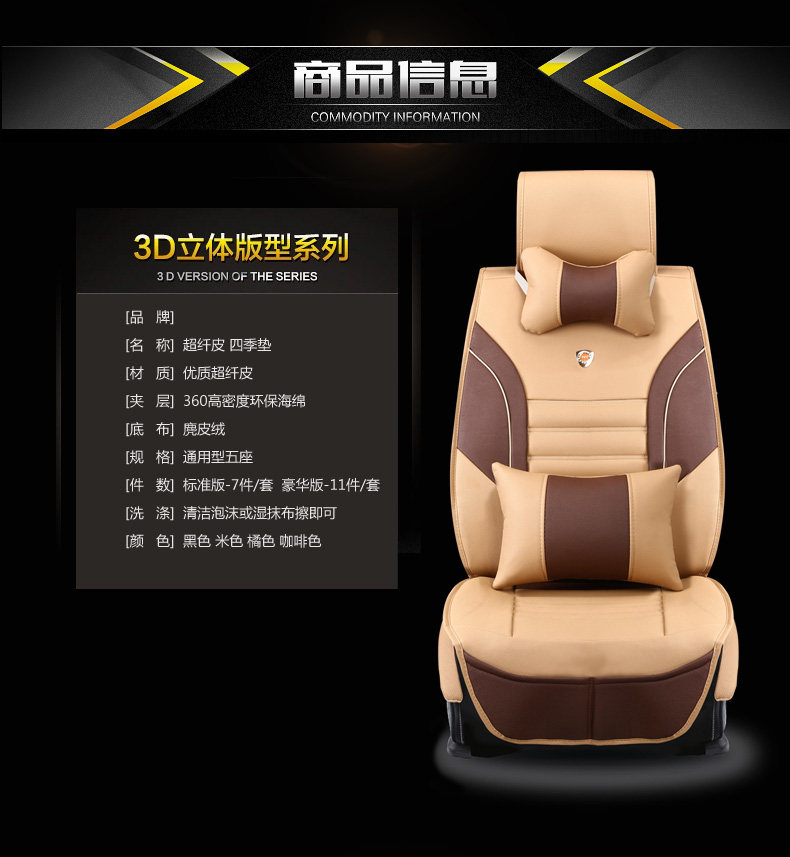 2 front seat cushion, two rear back pad, a long three rear seat, a rear center armrest mats