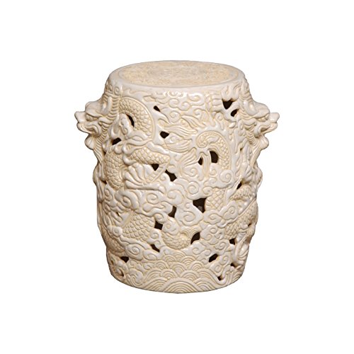 Product Description Emissary 1202CM dragon ceramic stool. Carved design in relief. Stool or side table. Size: 12 by 15-inch. Color: cream. Made in Viet Nam. 0