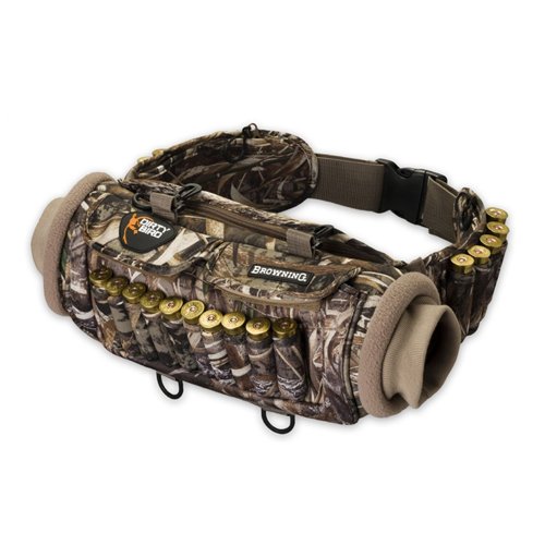 -. Feature : 3mm Neoprene construction / Fleece-lined hand compartment with internal pocket for handwarmers / 20 shotgun shell loops / Two bellowed front pockets with capacity to hold full boxes of shells / Fits up to a 60 inch waist