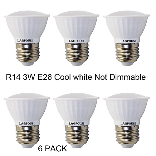 lagpousi (6PACK) R14 3Watt E26 Base Not Dimmable LED Bulb,Mini Reflector Light Bulb,Intermediate Base Bulb,Darlight white 5500K, 120 Degree,30W Incandescent Replacement (6, Cool white)