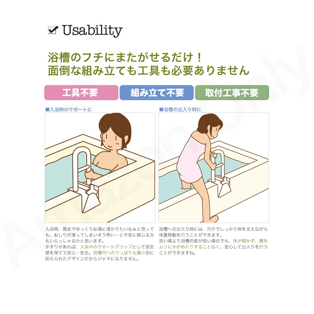 Even when entering and leaving the bathtub you can grasp the railings with both hands, helping to make weight movements smooth.