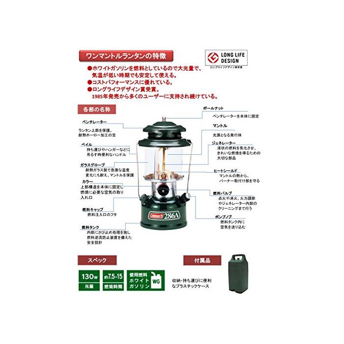 원본상품명: コルマン ランタン ワンマントルランタン 286A740J