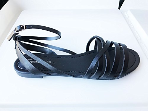 Binding : Apparel Product Description Celebrate great fashion in these women's ankle straps gladiator style flat sandals.These gladiator style sandals will surely attract people's eyes,with criss cross straps design,padded insole and stitching details. 0