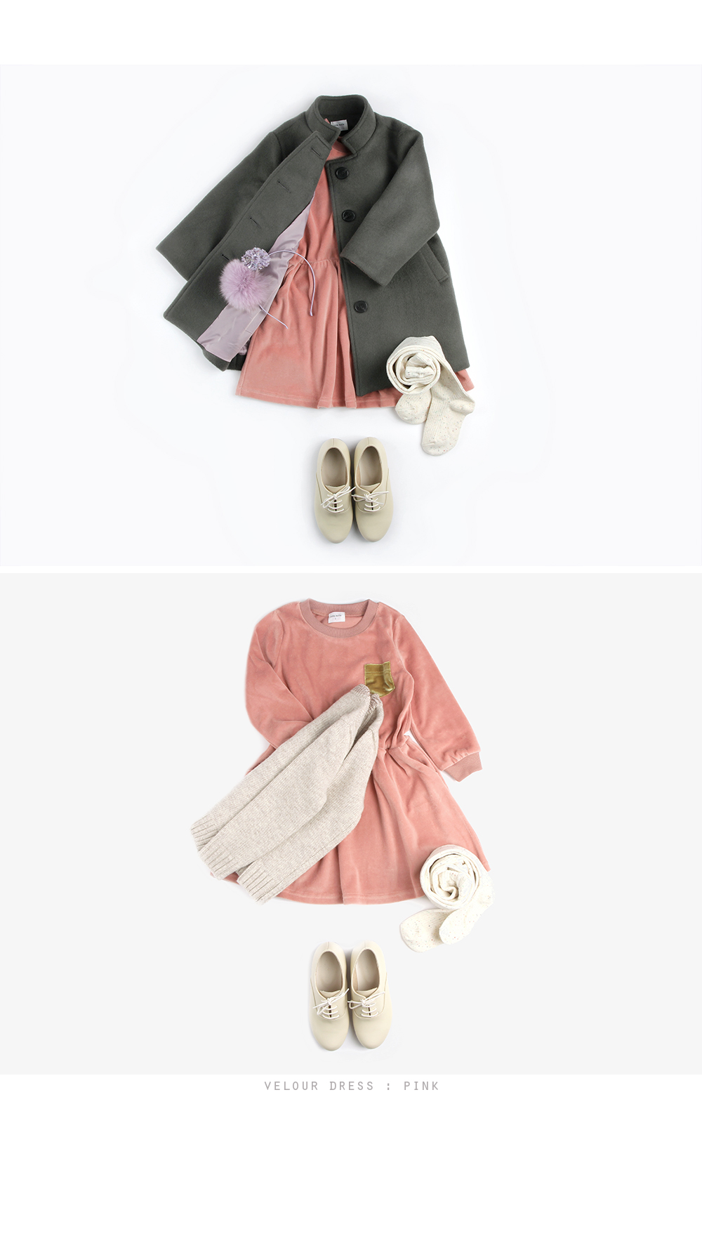 핑크와 머스타드 컬러로 소녀 감성에 입었을 때 화사함이 가득하구요,