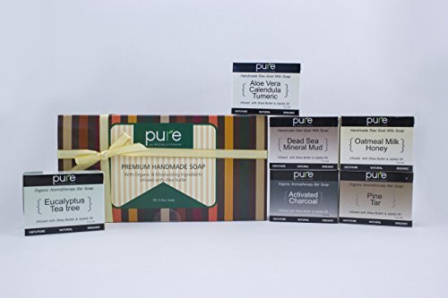 - SKIN LOVING -A luxurious soap gift set for women & men of handmade soap bars including Pine Tar, Activated Charcoal, Dead Sea Mineral Mud, Oatmeal Milk N Honey, Aloe Vera Calendula, & Tea Tree Oil Soap Bar! Artisan Soap Bars with Essential Oils, Goat Milk, Coconut Oil, Shea Butter & Jojoba Oil.