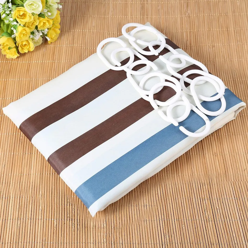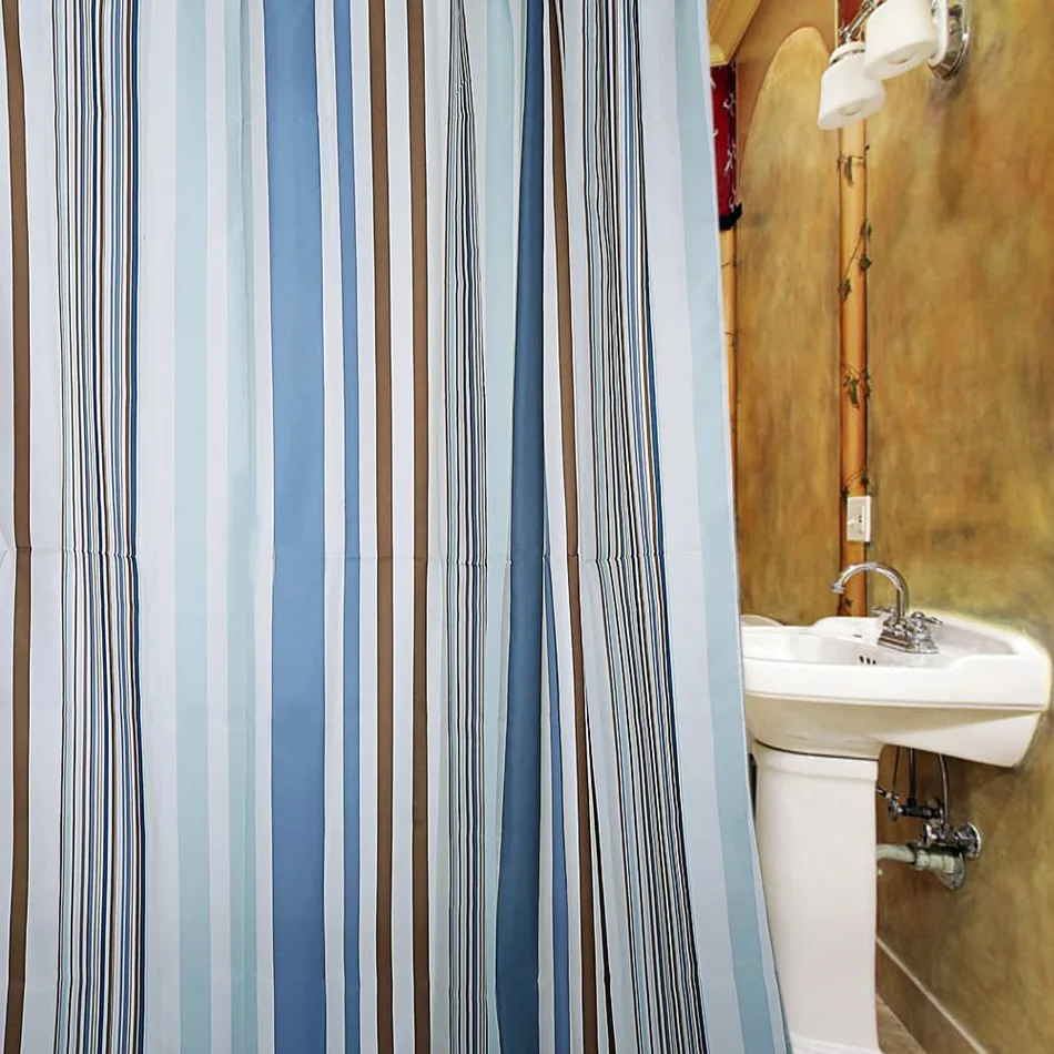 180*180cm Classical Striate Design Pattern Waterproof Polyester Bath Curtain With 12 Plastic Buckles