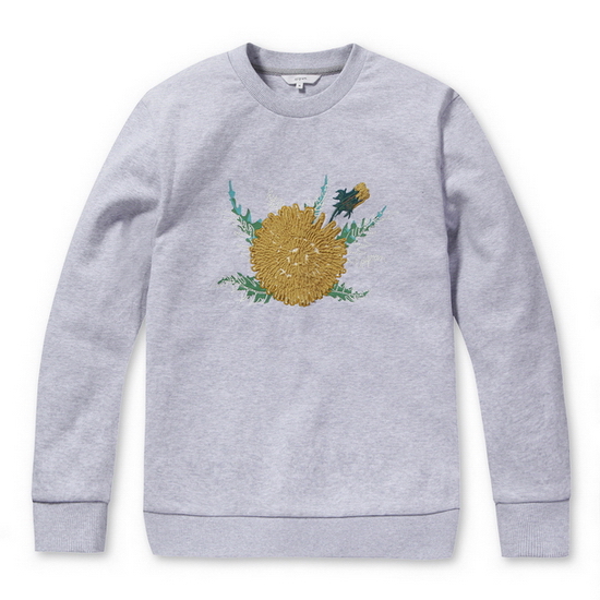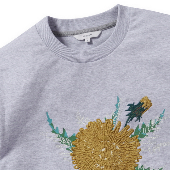 - 민들레 모티브 장식으로 포인트를 준 공용 스웨트셔츠.