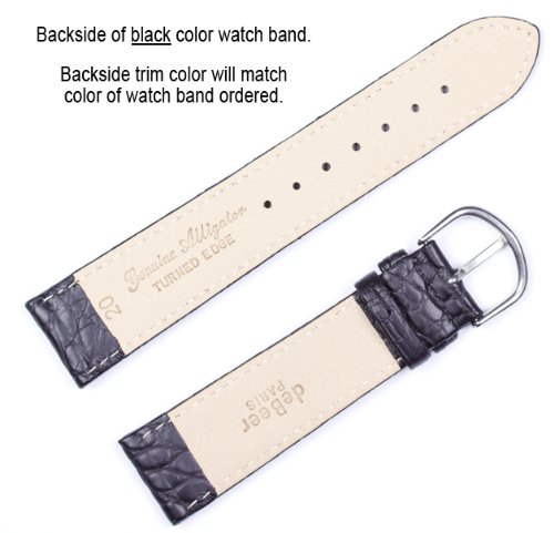 Binding : Watch Product Description From the deBeer Prestige collection, Louisiana Alligator watch bands have been the choice of international nobility for generations and are a statement of elegance and refinement. This high-end watch band has a matte finish, turned edges, and is lightly padded. This hand stitched watchband features velvety soft nubuck lining, reinforced stitching behind the buckle, and a German made stainless steel buckle. Light padding. 7 1/2" Long. Standard buckle color is silver. Gold color buckle can be requested through e-mail color choice - reference your order number. 0
