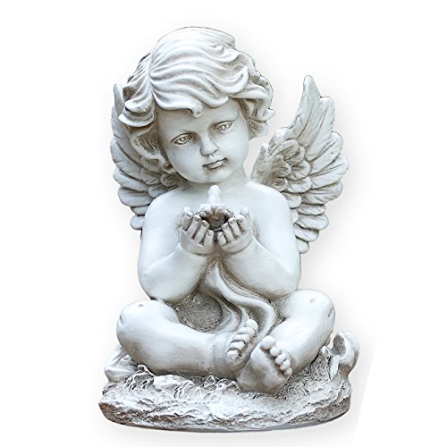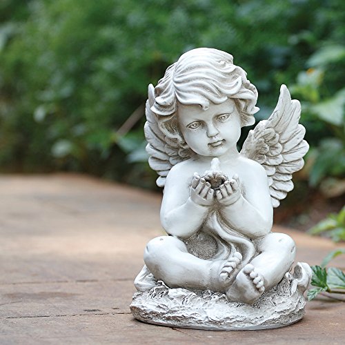 Sitting Cherub with Bird 9 Inch Resin Decorative Indoor Outdoor Garden Statue Figurine