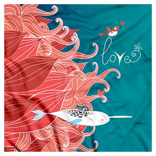 (Ambesonne)/Accessories/Cold Weather Accessories/DIRECT FROM USA/Narwhal Bandana by Ambesonne, Love Themed Sketch Illustration with Arctic Whale Bird and Floral...