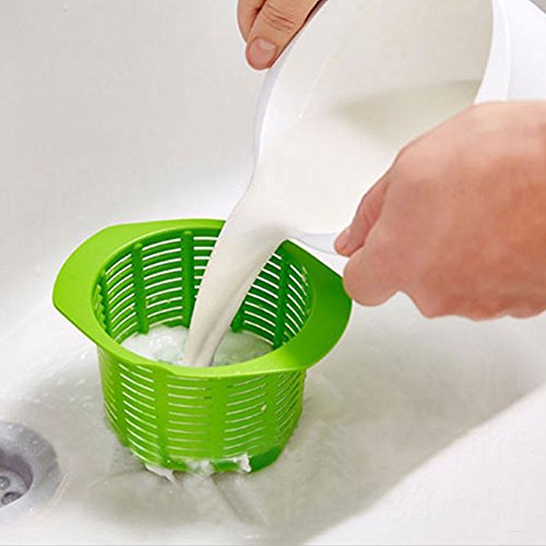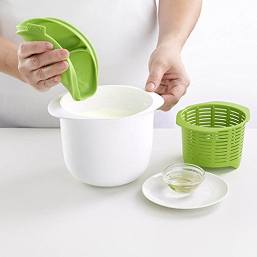 Features: 1. Made of safe and environmental protection silicone material 2. Cheese maker set 3. Dust-proof and good resistance to high temperature 4. Product Function: Microwave cheese maker Specifications: 1. Material: silicone PP plastic 2. Weight: about 180g 3. Size: Upper rim diameter: about 17cm / 6.69 in; bottom diameter: about 12cm / 4.72 in; height about 11.5cm / 4.53 in 4. Color: white green How to Use: included English manual and recipes Note: Please timely clean it after use Package included: 1 x cheese maker 0 |