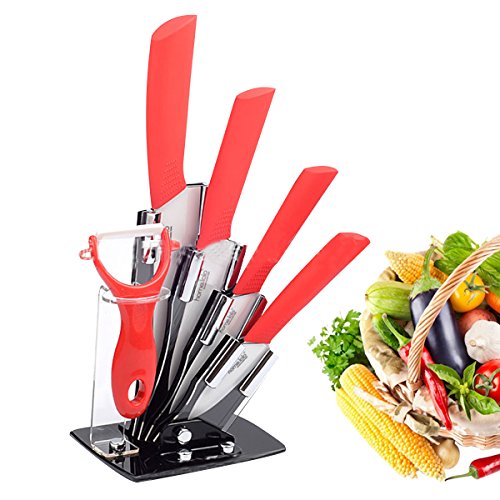 Home.lolo Premium Ceramic Knife Set - 5piece Kitchen Knives 3456 - Inch Ceramic Knives, Fruit Knife Gift Set Kitchen Six Suit Ceramic Cutting Tool (Red)