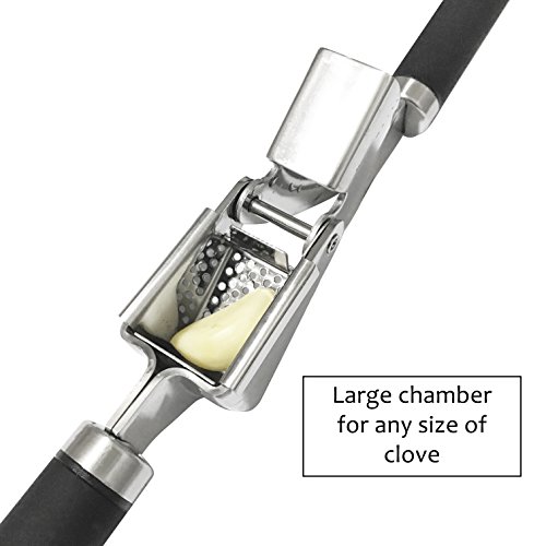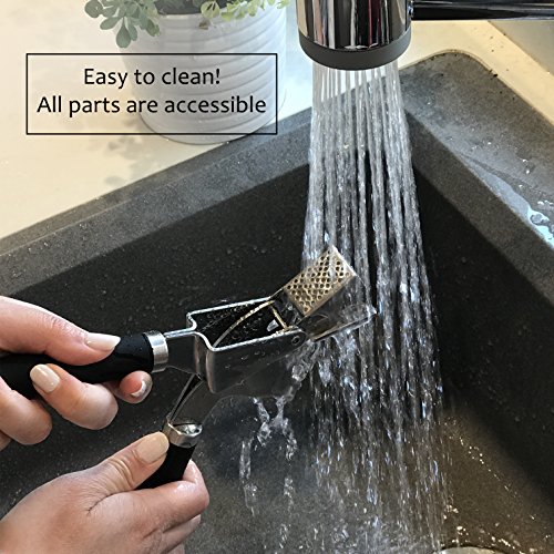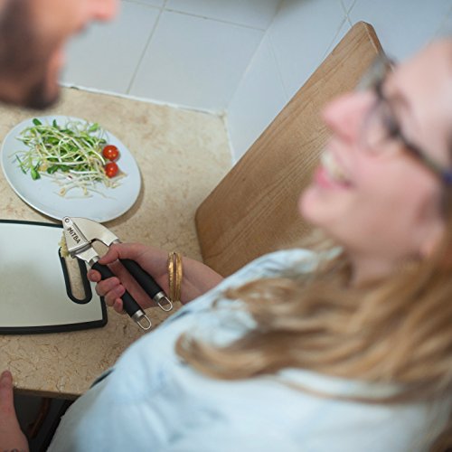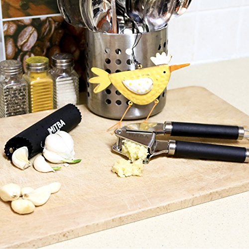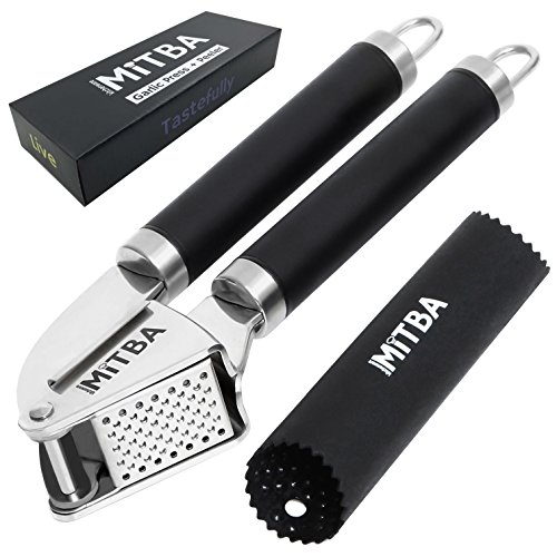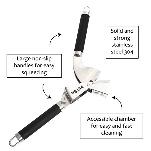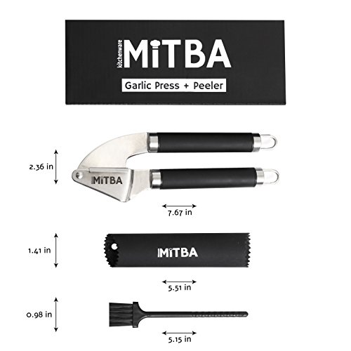 Professional Stainless Steel Garlic Press Show The Garlic Who's The Boss! ? Does mincing garlic take too much of your time and energy? ? Are you tired of endless cleaning that involves smelly hands? ? Do you feel sad for the wasted uncrushed garlic left inside the press? Introducing your very own MiTBA Garlic Press to the rescue! ? Elegant, slim ergonomic design for effortless mincing. Mincing garlic has never been so easy! ? Attractive gadget to compliment your kitchen, or to give as a gift, that will last a lifetime! MiTBA Garlic Press is made of high-quality stainless steel 304, the kind you will find in restaurant kitchens. ? The end to excess garlic waste! With MiTBA Garlic Press edible parts will never go to waste. ? Easy to clean: all parts are accessible and easy to wash, by hands or in the dishwasher. ? A full garlic set included - This Garlic Press comes with a quality silicone peeler and a cleaning brush.