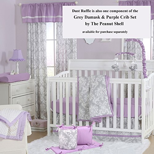 Studio : Farallon Brands Publisher : Farallon Brands Binding : Baby Product Product Description This Peanut Shell crib dust ruffle has a tailored design and features a classic grey and white damask print with purple trim. The 14" drop is 100% cotton sateen. Complete the dressing of your crib with coordinating quilts, sheets and bumpers from The Peanut Shell along with a host of other nursery decorating accessories. 0